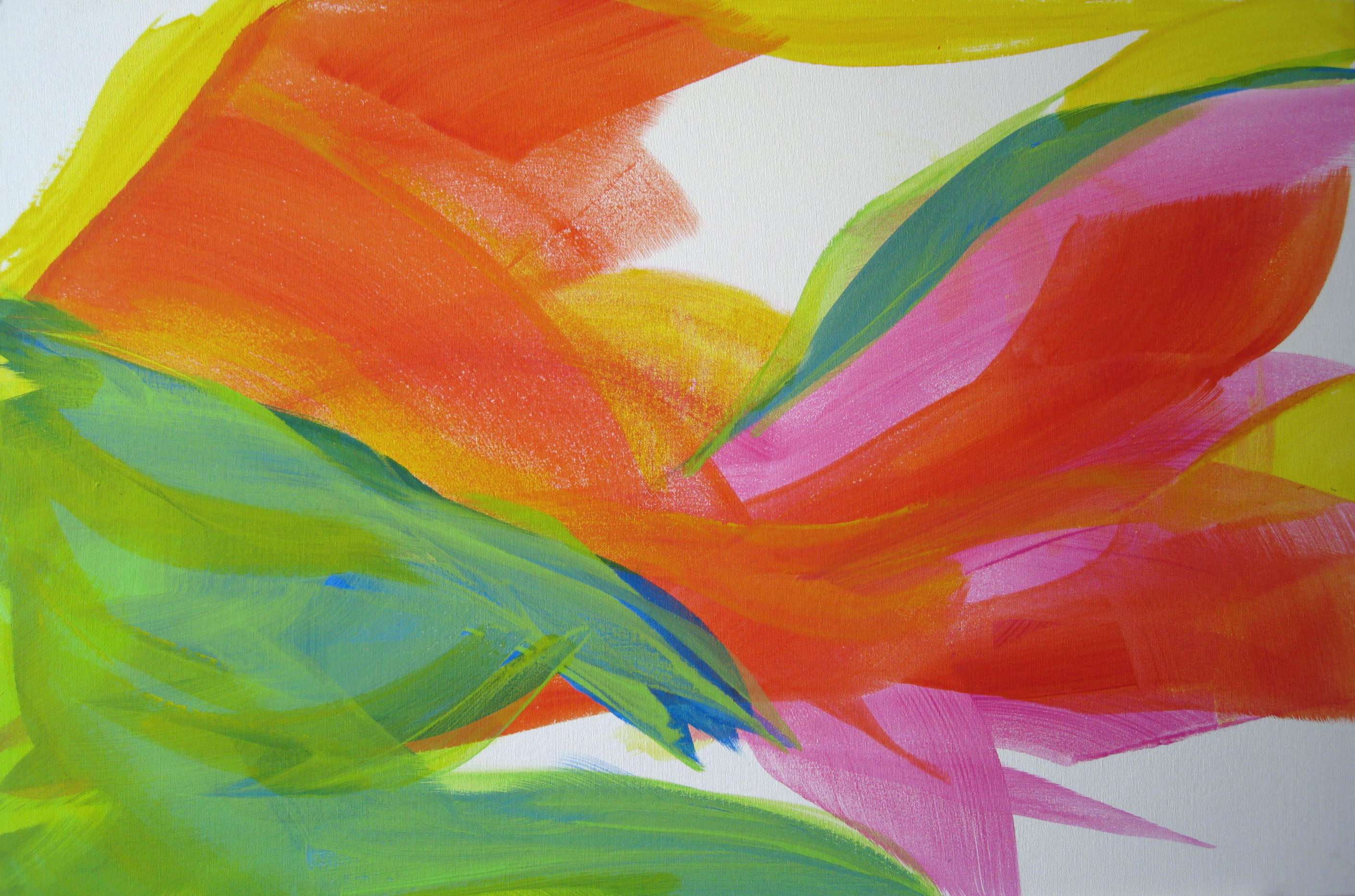 “Neon Geranium,” acrylic on Masonite, 28″ x 21.5″