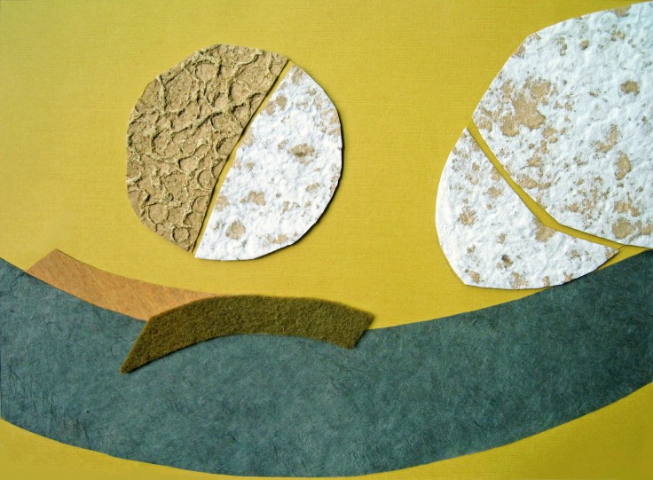 Then I added a piece of felt to complete this composition: 15″ x 12,” cut paper and felt