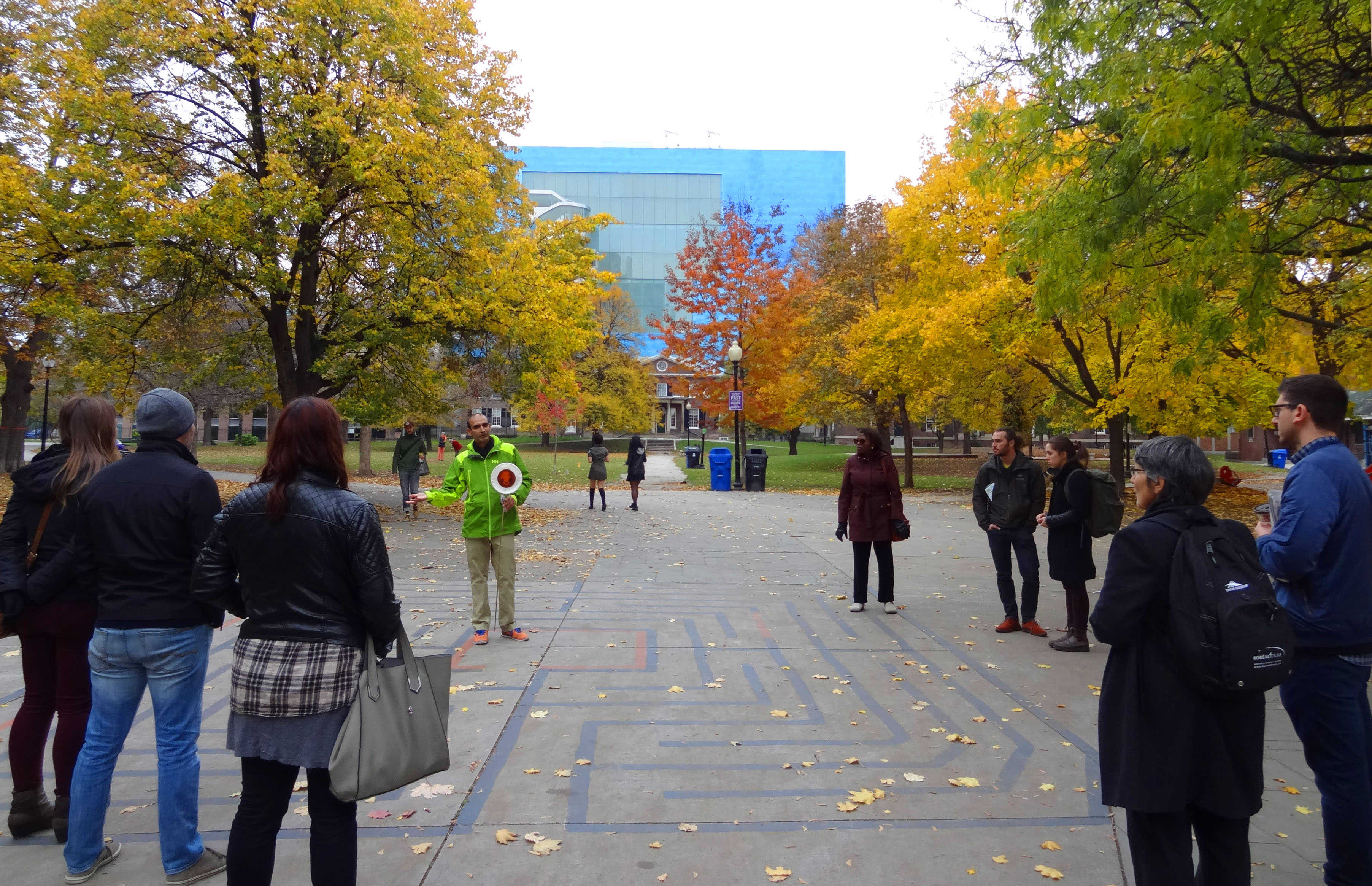 This weekend I participated in a Jane’s Walk led by HiMY SyED who has created over 100 labyrinths across Toronto using a tactical urbanist approach. Tactical urbanism is the act of making low-cost, often temporary changes to the built environment to improve public places, frequently without formal approval from authorities having jurisdiction. When these interventions are in place and demonstrate their value, they are likely to remain in some form.